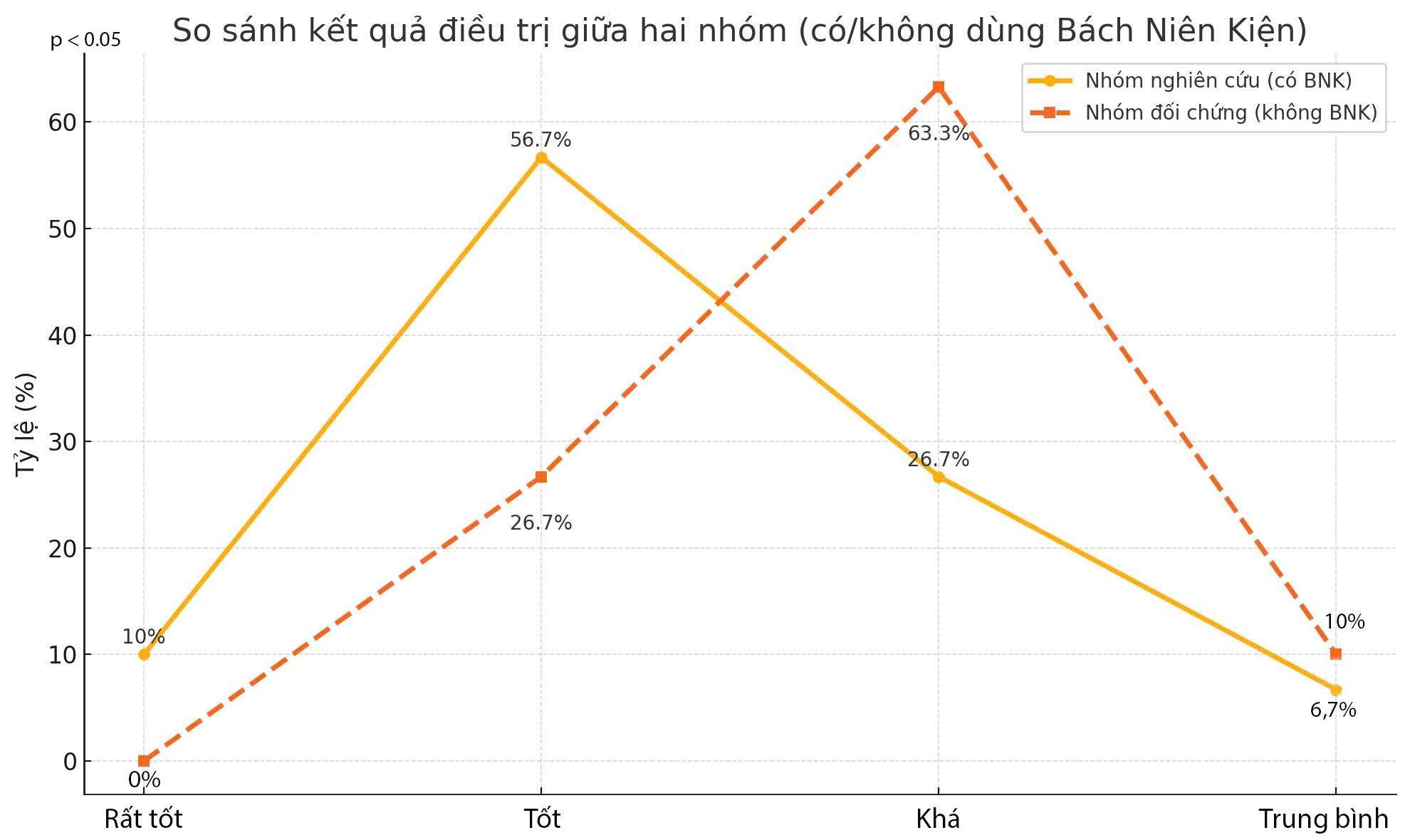 - Nhóm đối chứng chỉ điều trị bằng Glucosamin và điện châm, không sử dụng Bách Niên Kiện.