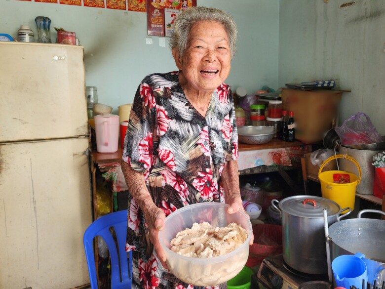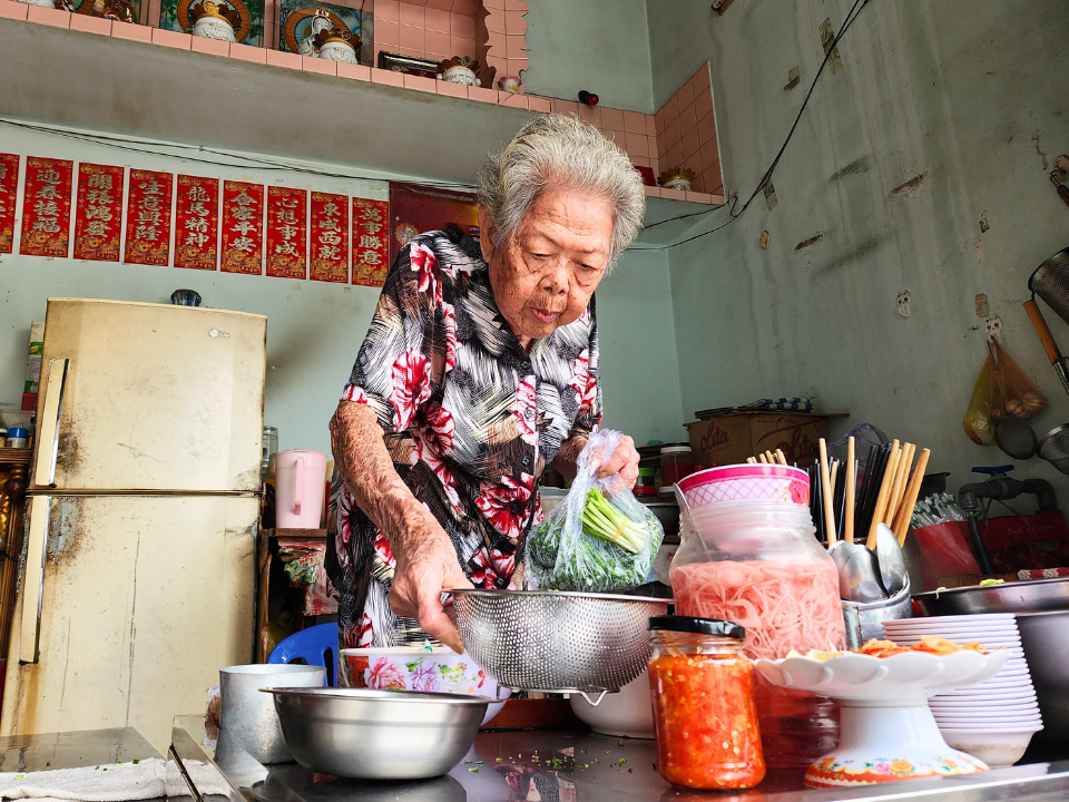 Ở tuổi 84, đôi tay bà đã run, bước chân cũng không còn vững như xưa. Nhưng mỗi lần nghe ai nhắc đến chuyện nghỉ, bà lại cười: “Nghỉ làm gì, nghỉ rồi buồn, nhớ con, bệnh còn nặng hơn. Còn sức thì còn làm, nhiều khi ngồi một chỗ không làm gì cũng đau lưng nhức mỏi. Giờ mỗi sáng, tôi đều chuẩn bị nguyên liệu như thế, ấy vậy mà khỏe mà còn được gặp nhiều khách hàng, nói chuyện cũng vui”.