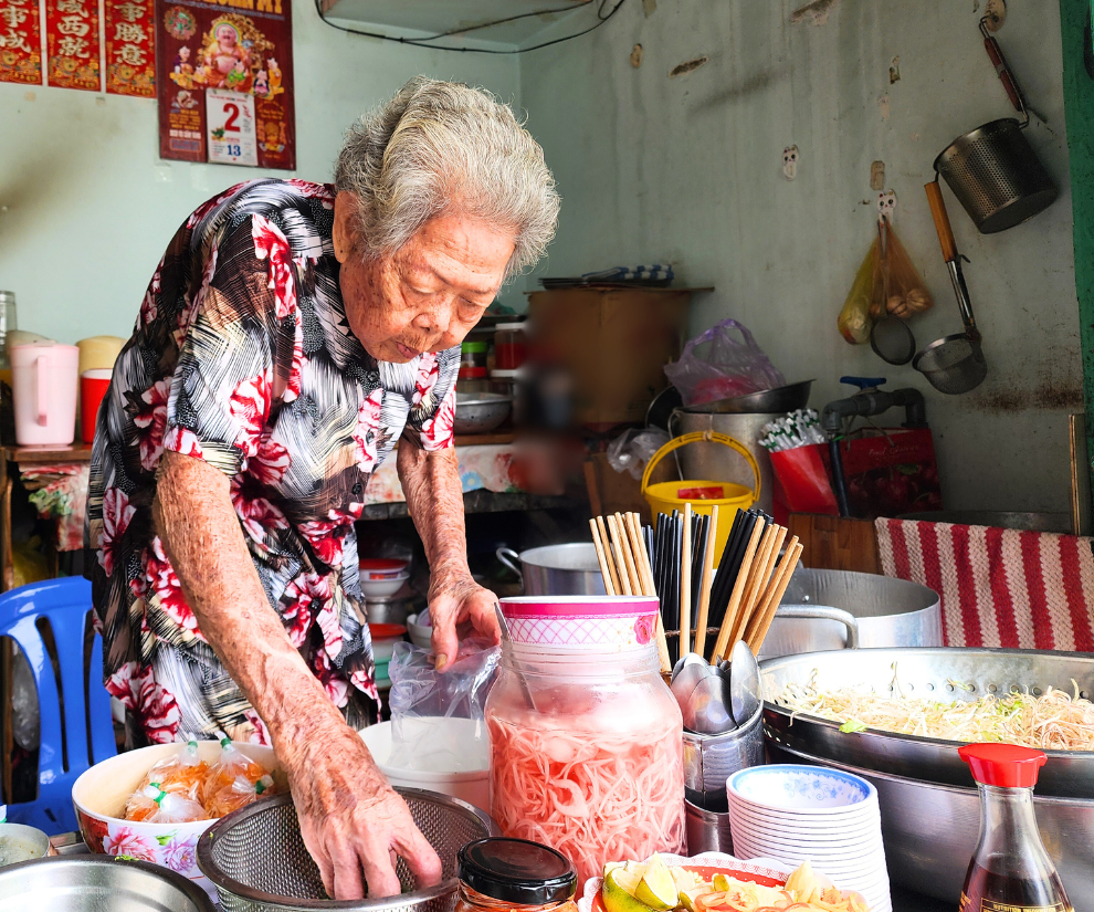 Nép mình trong một con hẻm nhỏ trên đường Đội Cung (phường Hòa Bình, TP.HCM), quán bún mọc của bà Lý Ba (84 tuổi) từ 4h sáng đã sáng đèn, từng chiếc ghế nhựa đỏ được bày biện ra trước quán, chuẩn bị chào đón những vị khách đầu ngày. Nồi nước lèo lúc này cũng sôi sùng sục, hương thơm tỏa ra khắp con phố nhỏ.