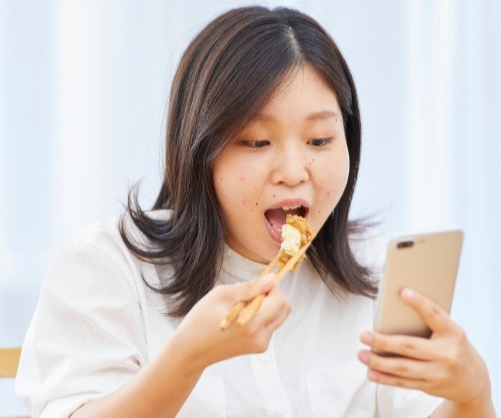 2. Ăn quá nhanh, vừa ăn vừa xem điện thoại