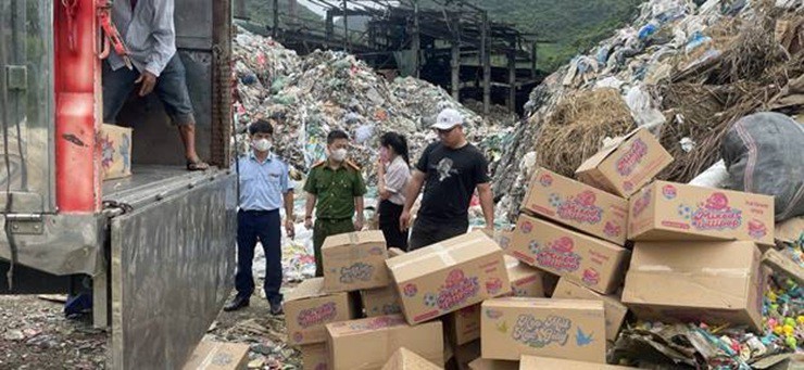 Đoàn kiểm tra giám sát tiêu huỷ khoảng 20 tấn sản phẩm vi phạm của My Candy Việt Nam - Ảnh: DMS