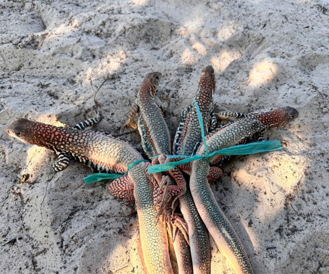 Dông cát hay còn gọi là kỳ nhông, là họ hàng gần với thằn lằn và tắc kè. Chúng có thân hình thuôn dài, đầu tam giác, đôi mắt tinh anh, tai to và lớp da sần sùi có thể thay đổi màu sắc để hòa vào cát nóng. Một con dông trưởng thành có thể dài tới nửa mét, với thân hồng nhạt điểm những vệt đen hoặc cam nổi bật. Dù bề ngoài khiến nhiều người e dè, nhưng ai từng thưởng thức thịt dông đều phải công nhận rằng đây là một trong những đặc sản đáng thử một lần.