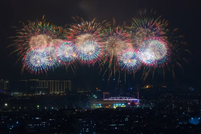 Những chủng loại pháo lần đầu tiên xuất hiện tại Việt Nam cùng hiệu ứng nghệ thuật lập trình riêng cho đại nhạc hội. Ảnh: Sun Group
