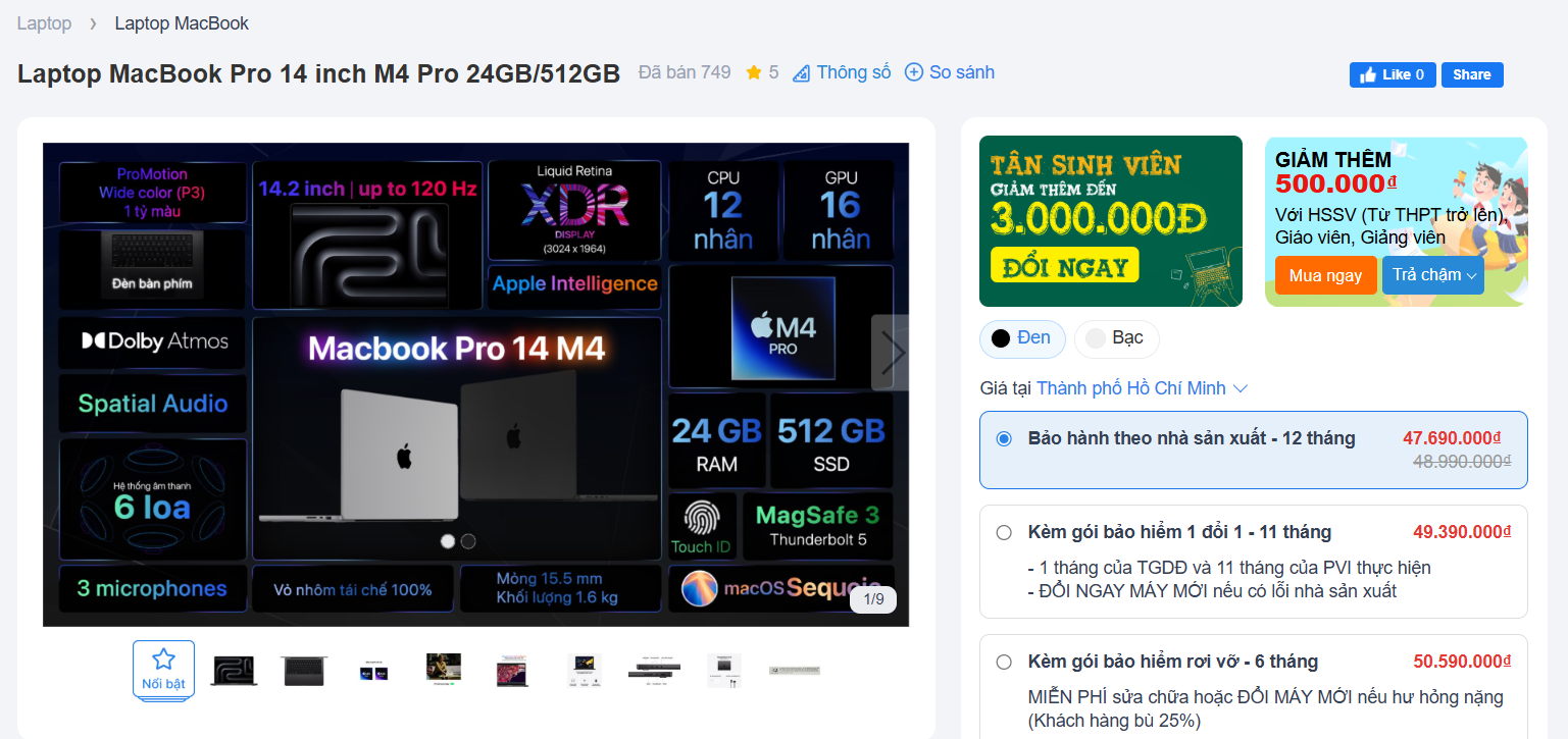 Theo ghi nhận, sức mua MacBook thường tăng mạnh vào giai đoạn đầu năm học và cuối quý. Lần điều chỉnh giá cuối tháng 9 vì vậy không chỉ giúp “giải nhiệt” cho thị trường mà còn tạo động lực thúc đẩy doanh số cho các nhà phân phối. Tuy nhiên, nhiều phiên bản MacBook Pro 16 inch M4 đã "cháy hàng".
