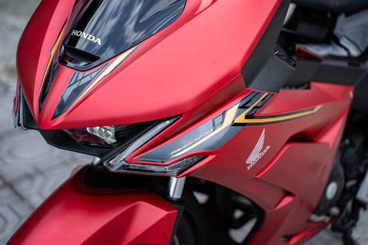 Lô-gô của xe được tạo hình sắc sảo, góp phần nhấn mạnh chất thể thao và tinh thần quyết liệt của thiết kế tổng thể. Xe có nhiều tùy chọn phối màu, gồm phiên bản Thể thao lấy cảm hứng từ CBR1000RR-R, phiên bản Đặc biệt với bộ tem sắc nét và phiên bản Tiêu chuẩn mang phong cách hiện đại, trẻ trung.