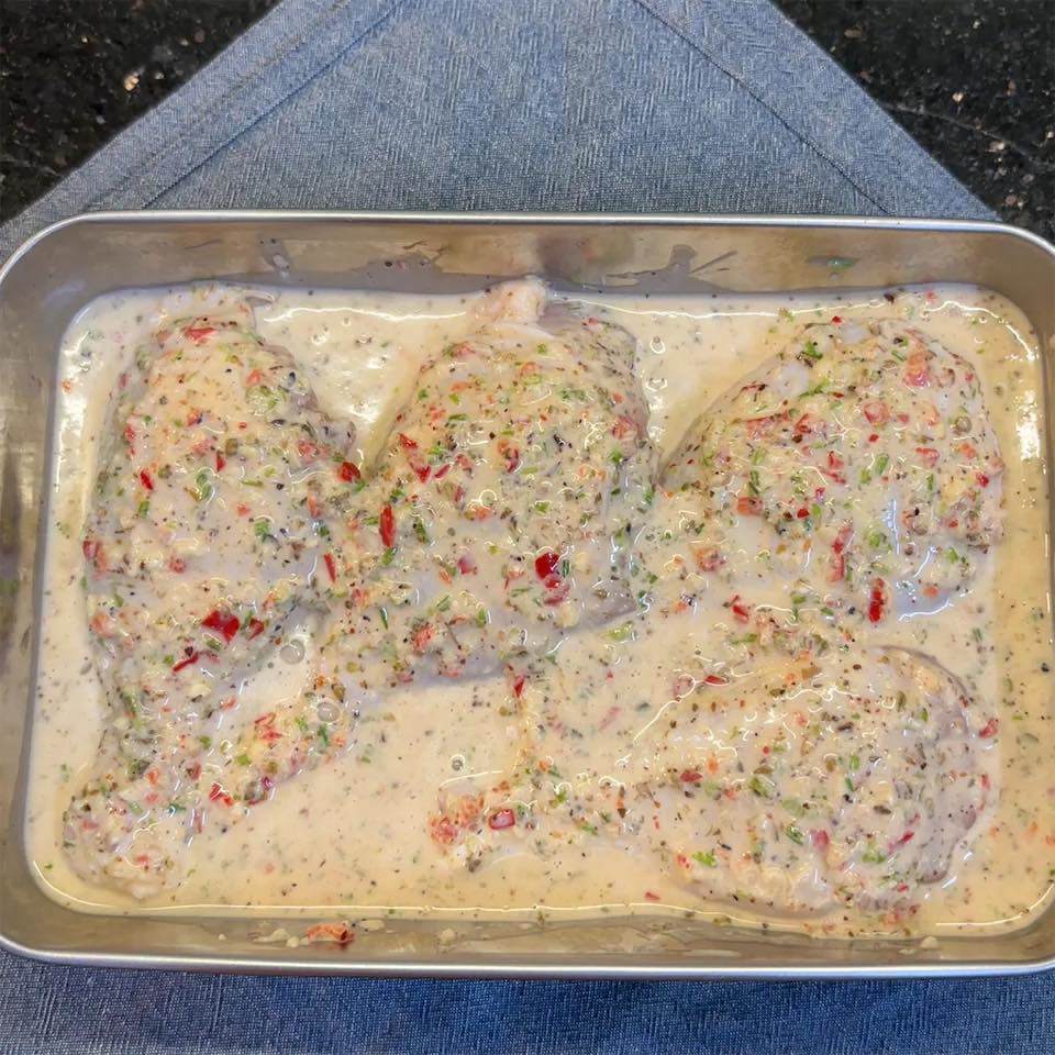 Bước 3: Đặt gà vào hộp hoặc tô lớn, đổ ngập hỗn hợp ướp lên gà. Ướp ít nhất 90 phút, tốt nhất là qua đêm trong ngăn mát tủ lạnh.