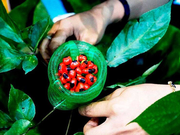 Cuối tháng 7 đến tháng 10 hằng năm là mùa thu hoạch hạt sâm Ngọc Linh. Khi sương núi còn đọng trên tán lá rừng, những chùm hạt sâm bắt đầu chuyển sang màu đỏ rực – dấu hiệu chín tới. Mỗi chùm có từ 20–100 hạt tùy tuổi cây. Người trồng phải khom mình dưới tán rừng, cẩn thận từng chút để thu hoạch bởi hạt rất dễ rơi và hỏng. Công việc này đòi hỏi sự tỉ mỉ, kiên nhẫn và am hiểu cây sâm. Hạt sau khi thu được mang về phân loại kỹ, đếm số lượng rồi mới giao cho thương lái hoặc người mua lẻ. Những hộ trồng nhiều thường giữ phần lớn hạt lại để ươm giống cho vụ sau vì nguồn giống quý này lúc nào cũng khan hiếm.