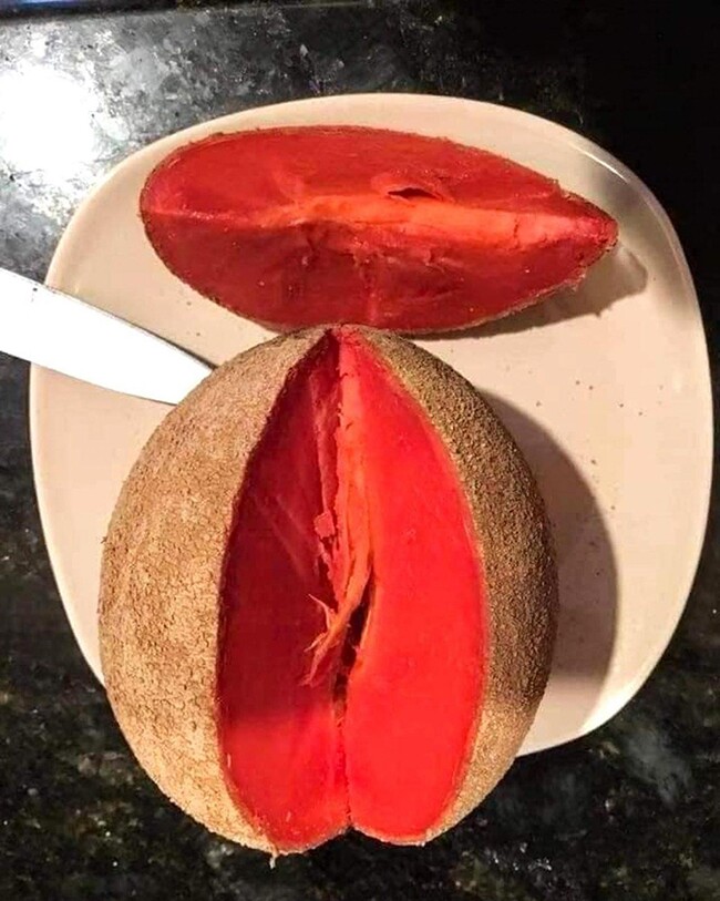 Trong những năm gần đây, bên cạnh các giống hồng xiêm truyền thống, thị trường xuất hiện một giống hồng xiêm lạ mắt với phần ruột đỏ cam rực rỡ, đó chính là hồng xiêm ruột đỏ.