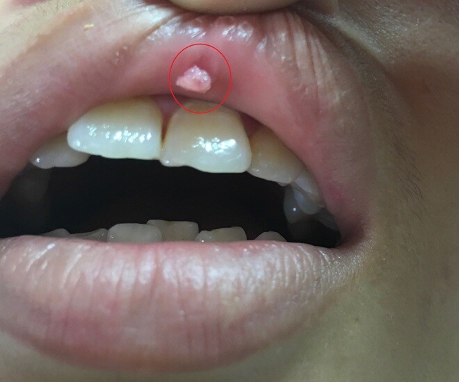 Hình ảnh nốt sùi ở miệng bệnh nhân khi đến khám. Ảnh: BSCC.