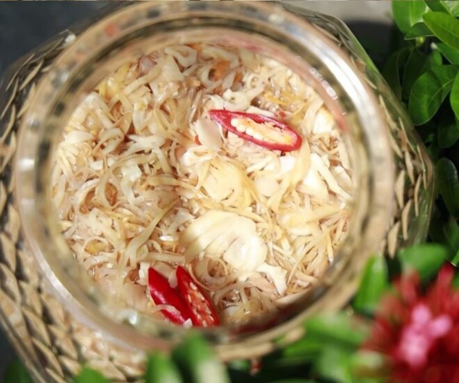 Để tạo nên hương vị đặc trưng, người dân còn trộn thêm các nguyên liệu "cây nhà lá vườn" như sả, riềng, tỏi, ớt… Tất cả được băm nhỏ, trộn đều với sợi mít rồi mới đem muối. Ở một số nơi, mít còn được phơi nắng sơ trước khi muối để sợi mít săn lại, tăng độ giòn và dai khi ăn.