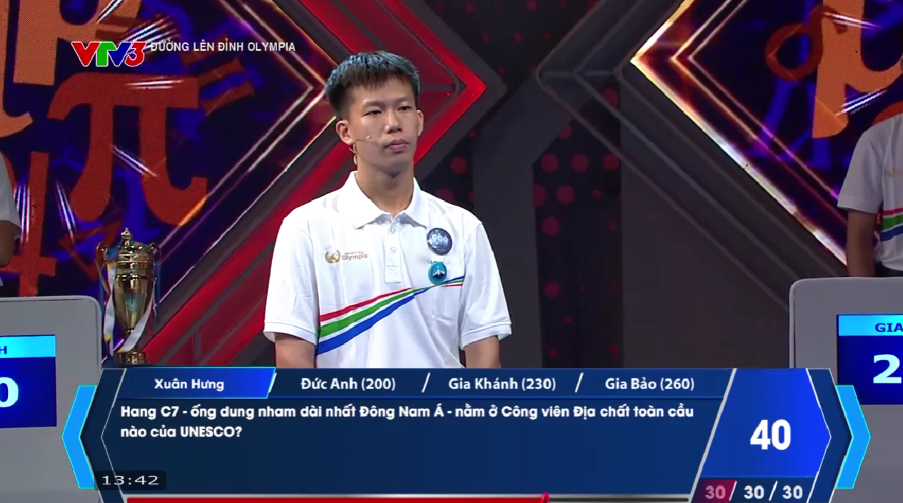 Gia Bảo bước vào phần thi Về đích cùng 2 câu trả lời đúng, nâng tổng số điểm lên 260 điểm. Xuân Hưng có 1 đáp án sai và bị trừ điểm.