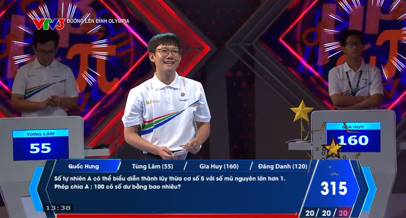Quốc Hưng là người Về đích đầu tiên với 2 câu trả lời đúng, nâng tổng số điểm lên 335.