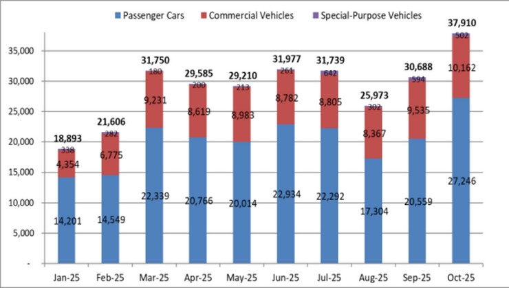 Tính đến hết tháng 10/2025, doanh số bán hàng của xe lắp ráp trong nước đạt 137.047 xe, tăng 2% so với cùng kỳ, trong khi xe nhập khẩu đạt 152.284 xê tăng 18% so với cùng kỳ.
