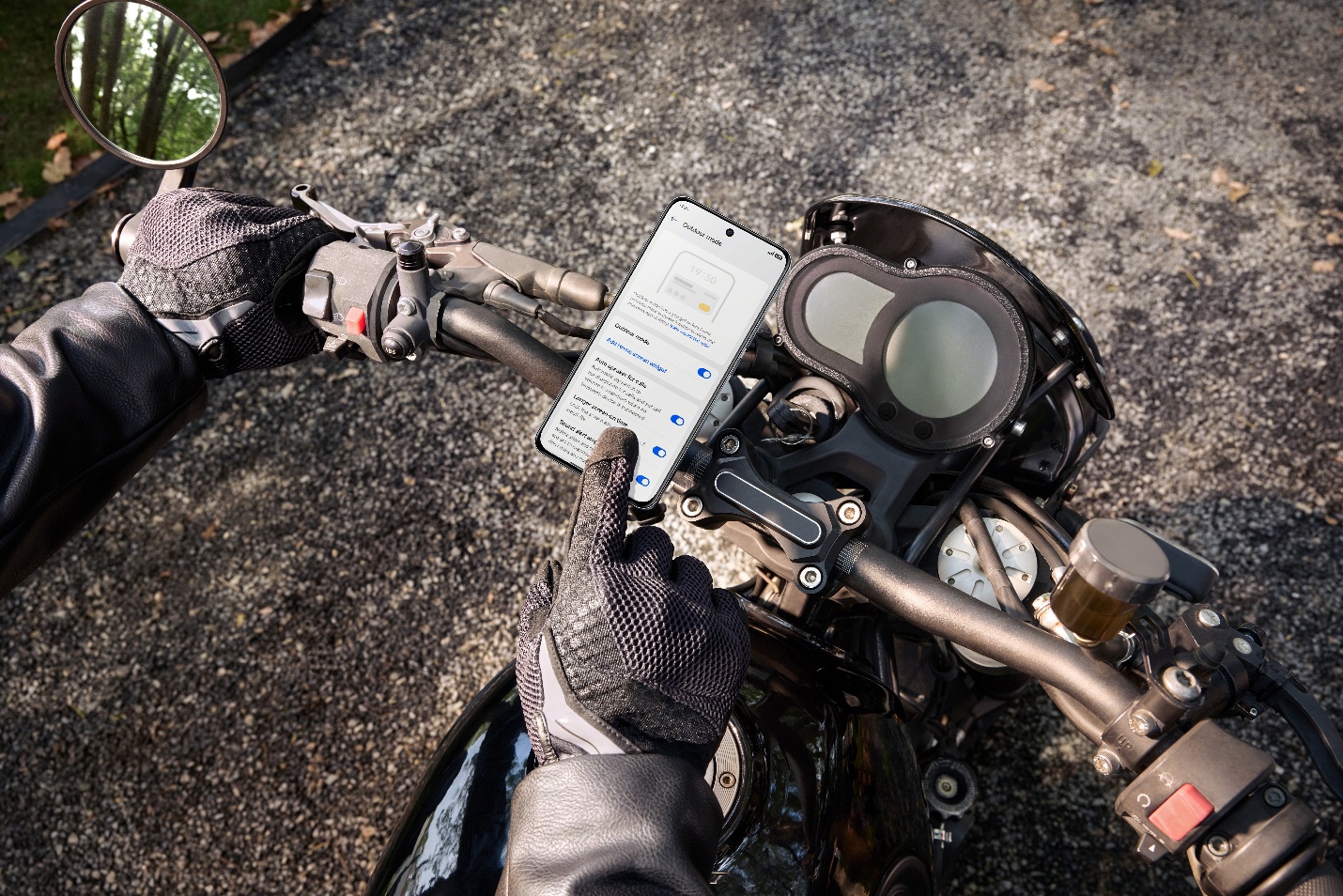 Về hiển thị sở hữu màn hình AMOLED 6.57 inch Full HD+, tần số quét 120Hz, độ sáng tối đa lên tới 1.400 nits và viền siêu mỏng chỉ 1.67mm – vừa cho hình ảnh sắc nét, trong trẻo ngoài trời nắng, vừa đảm bảo thao tác chạm điều khiển nhanh nhạy kể cả khi đeo găng tay.