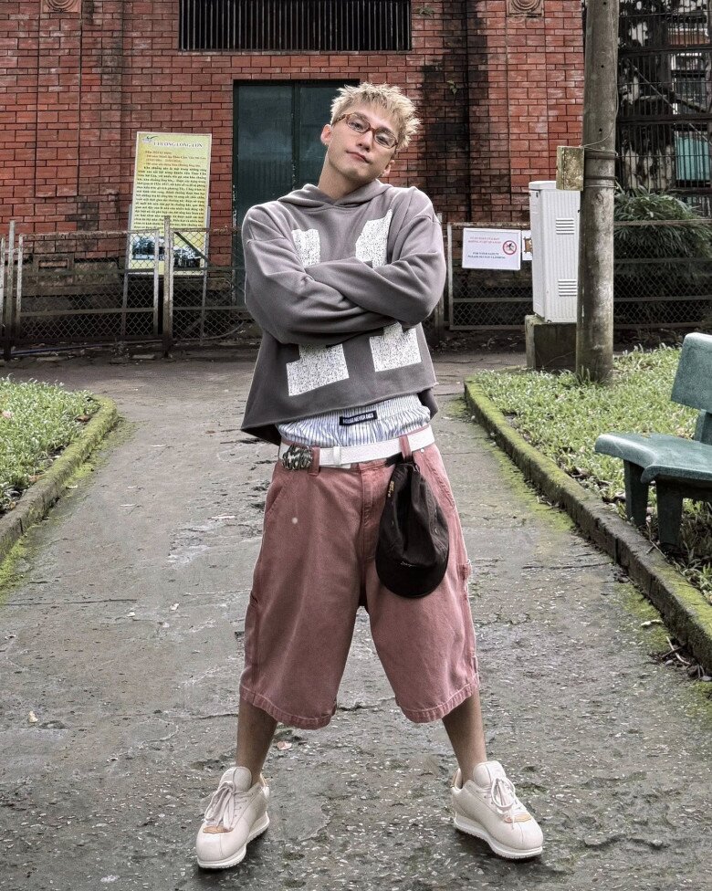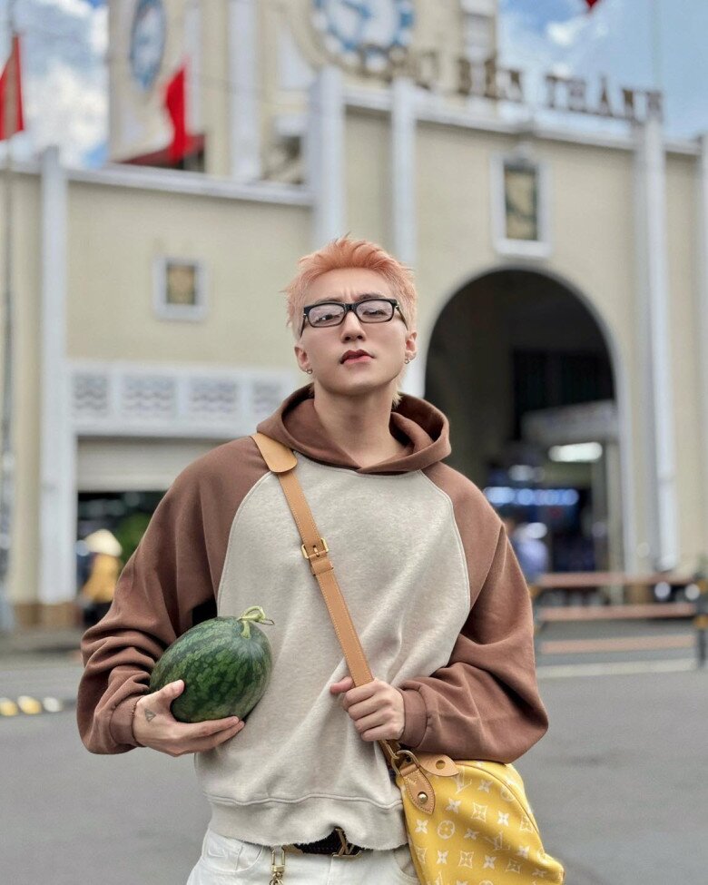 Trong khung hình đầu tiên, Sơn Tùng xuất hiện trước cổng chợ Bến Thành – biểu tượng quen thuộc của Sài Gòn hơn trăm năm qua. Anh diện áo hoodie nâu kem, quần short trắng và đôi sneakers xanh ton-sur-ton với quả dưa nhỏ cầm trên tay, tạo cảm giác trẻ trung, phóng khoáng.Giữa khung cảnh cờ đỏ và những tòa nhà cổ, bức ảnh mang hơi thở “vintage” nhưng vẫn rất đời thường. Chợ Bến Thành vốn là nơi dễ bắt gặp mọi góc đẹp – từ quầy hàng trái cây đầy màu sắc đến dãy cửa cũ loang màu thời gian.