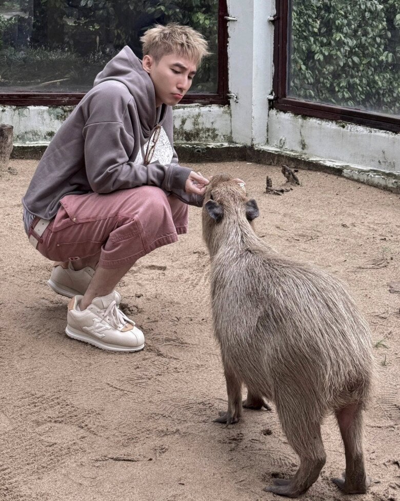 Tạm xa tiếng xe cộ, Sơn Tùng chọn Thảo Cầm Viên làm điểm dừng tiếp theo. Anh mặc áo hoodie xám, quần short hồng và đôi giày trắng, ngồi thư thả cho những chú capybara ăn lá.Khoảnh khắc giản dị nhưng đầy năng lượng tích cực ấy khiến fan thích thú – một hình ảnh hiếm hoi của Tùng khi anh rời xa sân khấu và hòa mình vào thiên nhiên.