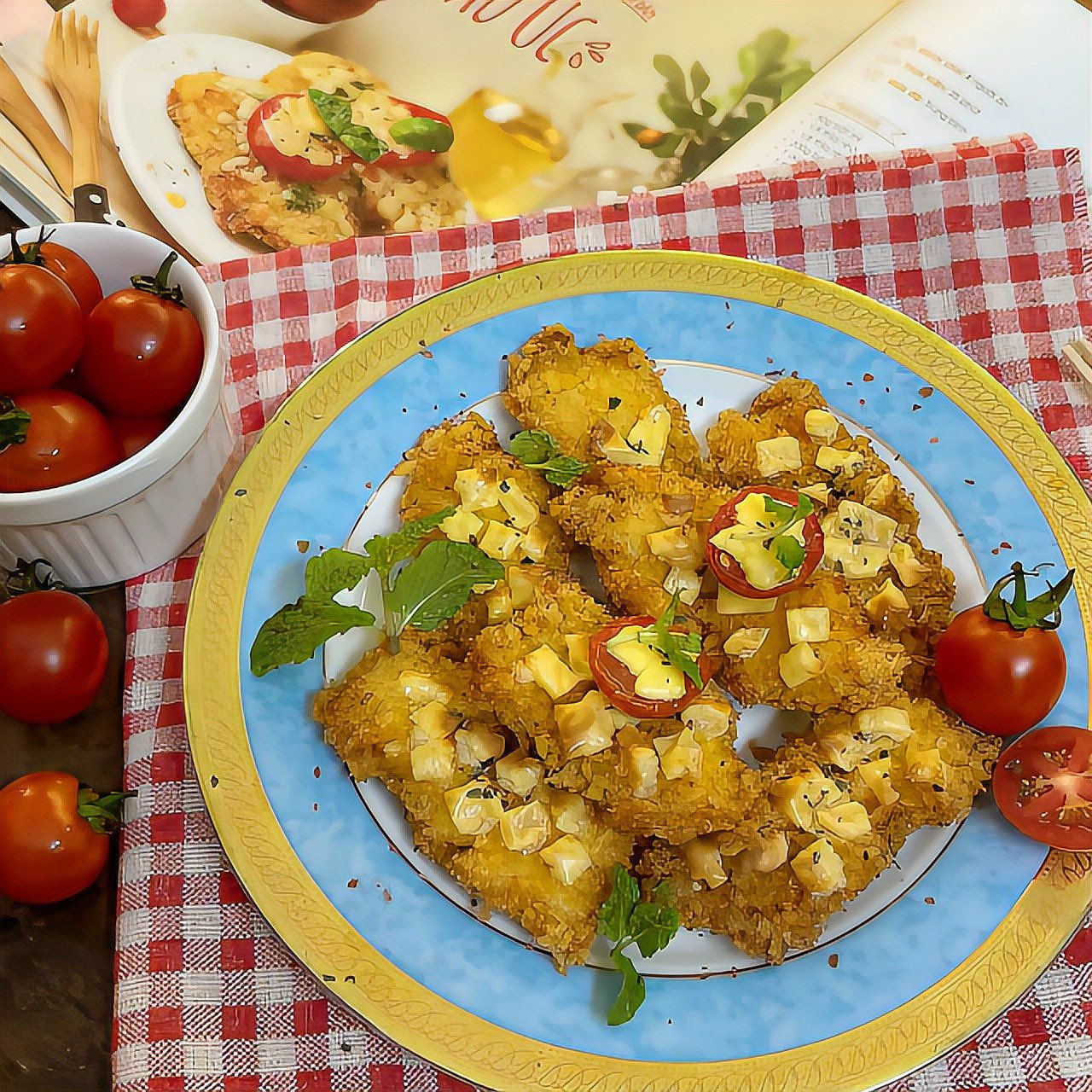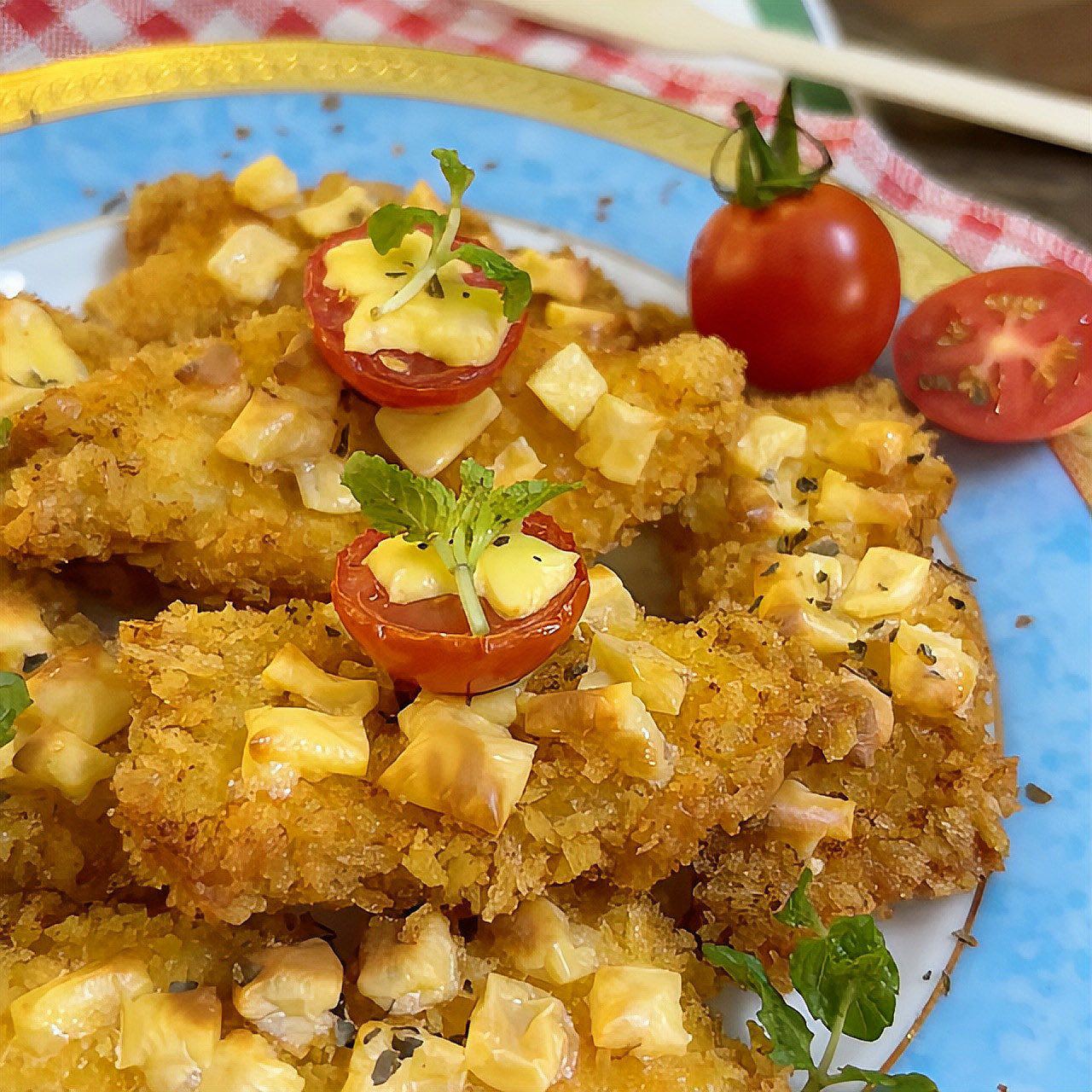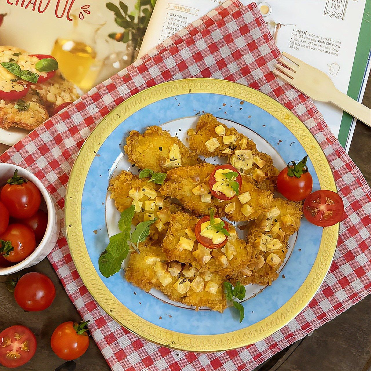 Gà chiên giòn rụm, vị phô mai béo thơm hòa quyện với cà chua ngon miễn chê.