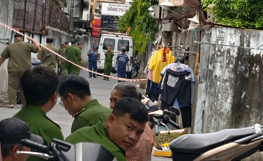 Công an phong tỏa hoàn toàn con hẻm để phục vụ công tác điều tra. Ảnh: NT