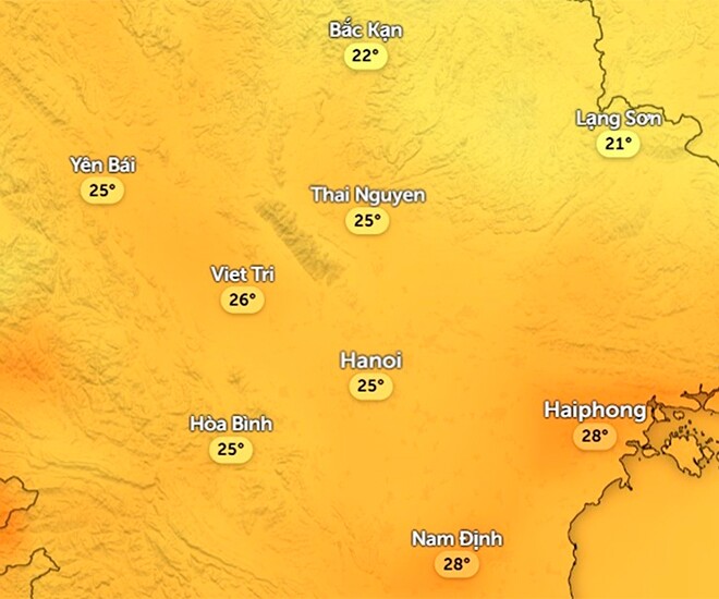 Chiều nay, nhiệt độ Hà Nội không thay đổi nhiều, như đã đề cập trong bản tin trước. Nhiệt độ cao nhất trong ngày vẫn ở mức xấp xỉ 26oC (nhiệt độ cảm nhận thực tế ngoài trời). Các tỉnh thành lân cận cũng tương tự.