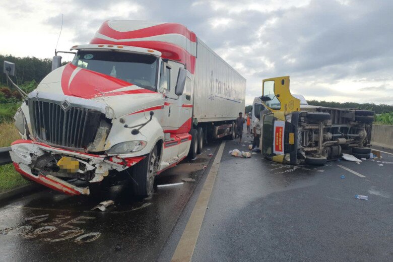 Xe tải chở hàng cứu trợ lật ở cao tốc, tạo chuỗi 4 ô tô tông liên hoàn
