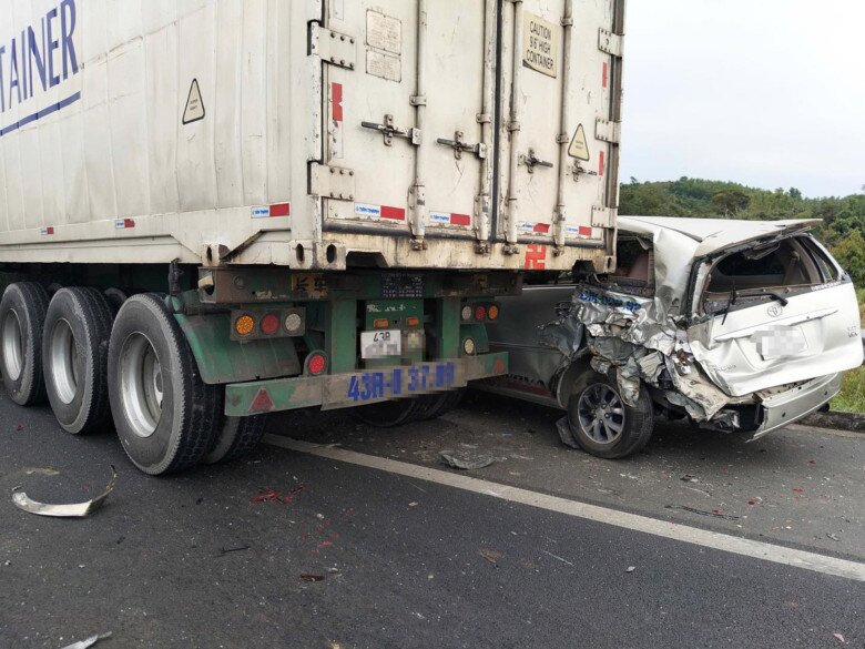 Ngay sau đó, ba phương tiện di chuyển phía sau, gồm xe khách 16 chỗ, xe container và ô tô 7 chỗ, do không kịp xử lý tình huống đã va chạm liên hoàn, tạo nên cảnh hỗn loạn trên tuyến đường.