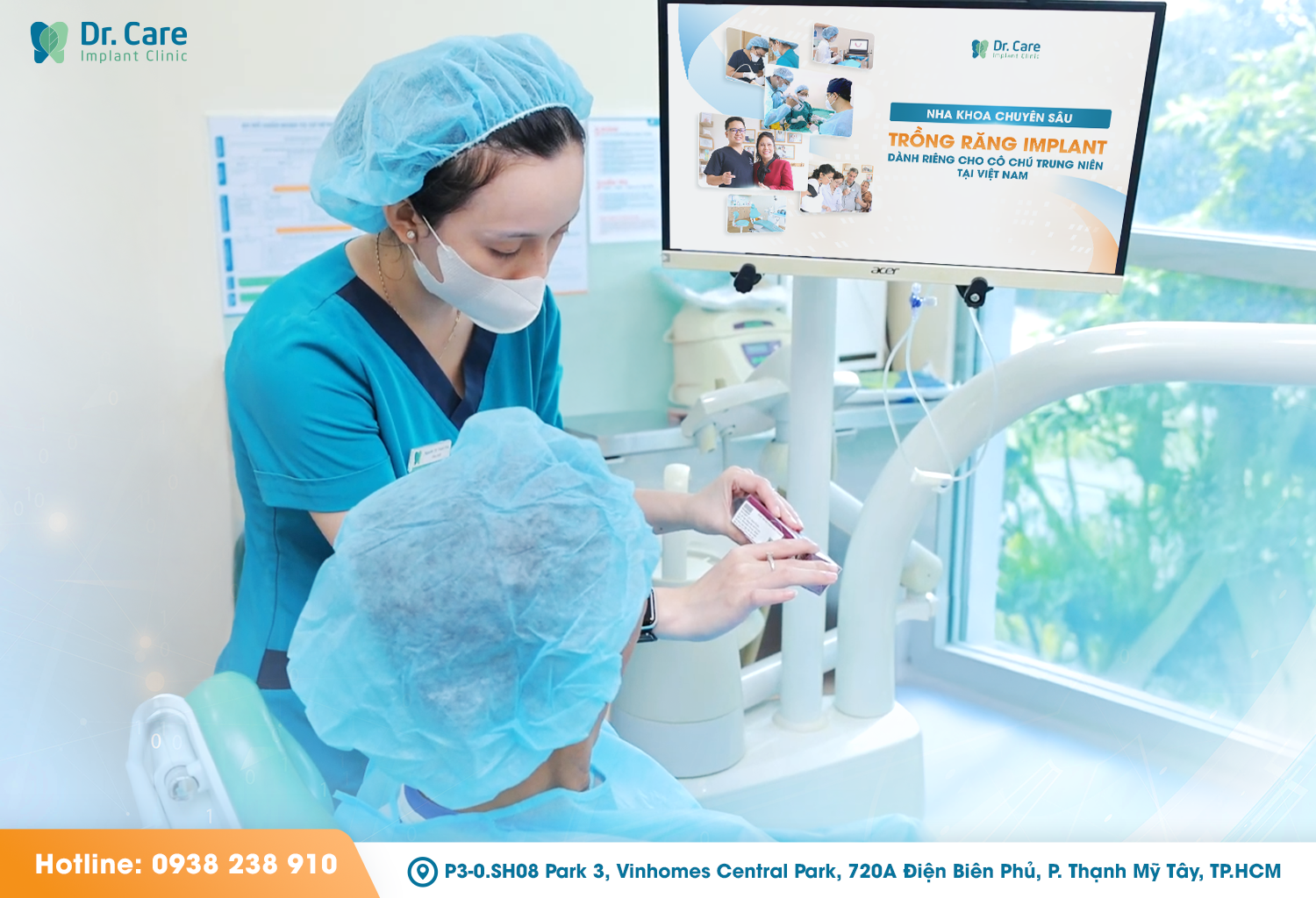 Không chỉ là nơi điều trị mất răng, Dr. Care Implant Clinic còn được xem là đơn vị tiên phong tại Việt Nam trong lĩnh vực trồng răng Implant dành riêng cho người trung niên. Với đội ngũ bác sĩ tốt nghiệp Đại học Y Dược TP.HCM, ít nhất từ 7 - 15 năm kinh nghiệm chuyên sâu về Implant, Dr. Care đảm bảo từng ca cấy ghép được lên kế hoạch chính xác bằng công nghệ kỹ thuật số hiện đại, đảm bảo an toàn, không đau và phục hồi nhanh.