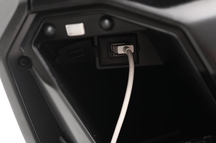 Phía trước xe có hai hộc chứa đồ nhỏ có nắp từ, tiện cho việc cất giữ vật dụng cá nhân, trong khi phía sau được trang bị baga chở đồ. Ngoài ra, Nexy+180 hỗ trợ kết nối thông minh với các ứng dụng bên thứ ba như Carbit Ride và Roadcam, giúp người dùng quản lý dữ liệu hành trình và camera hành trình dễ dàng hơn.