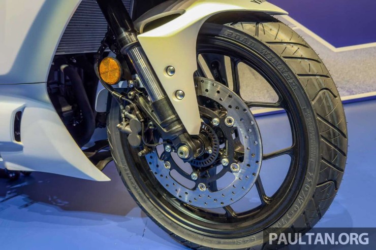Về khung gầm, phuộc trước dạng upside-down (không thể điều chỉnh), trong khi phuộc sau monoshock có thể điều chỉnh tải trước. Hệ thống phanh gồm đĩa đơn thủy lực cho cả trước và sau, đảm bảo hiệu suất phanh ổn định. Xe được trang bị lốp trước kích thước 110/70 và lốp sau 140/70, chiều cao yên ở mức 758 mm, dung tích bình xăng 14,3 lít, và trọng lượng 160 kg.